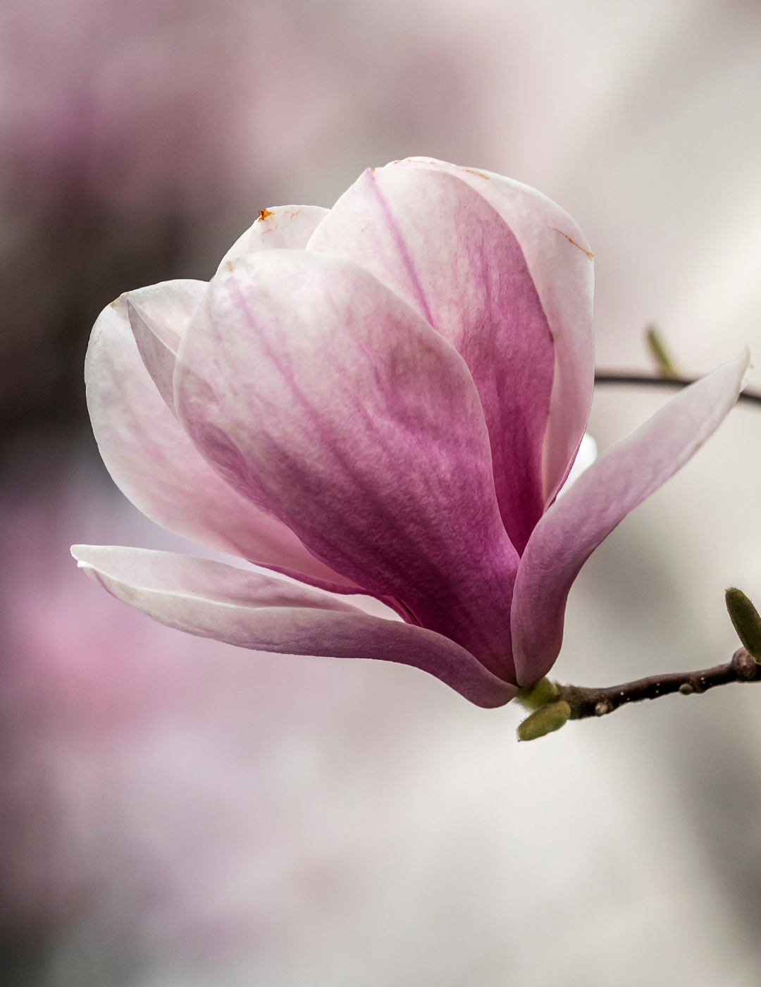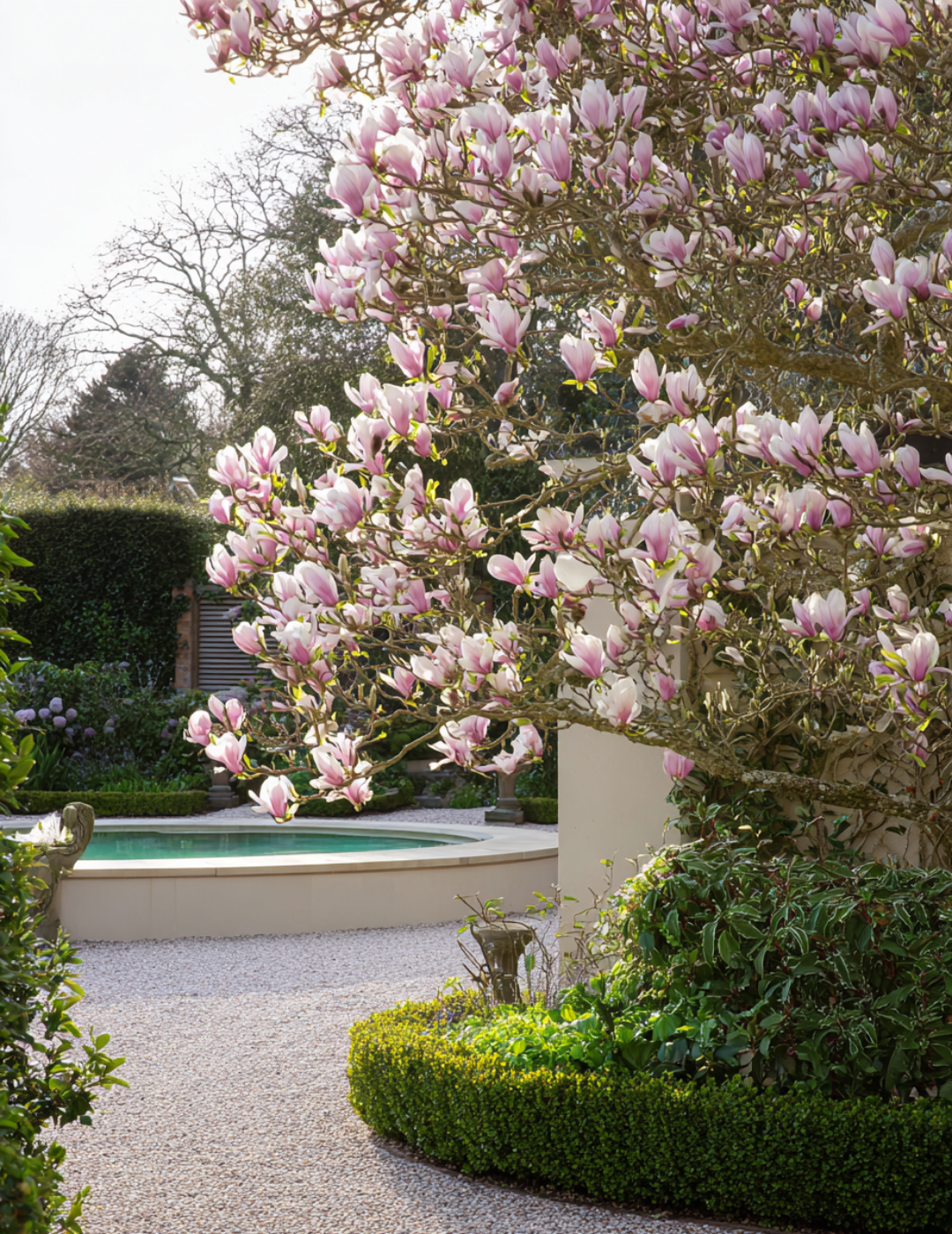 Magnolia × soulangeana produces large, tulip-shaped flowers in shades of white, soft pink and rose-purple from late winter into early spring. The blooms appear on bare branches before the foliage emerges, creating a spectacular and iconic early-season display that is among the most admired of all magnolias.