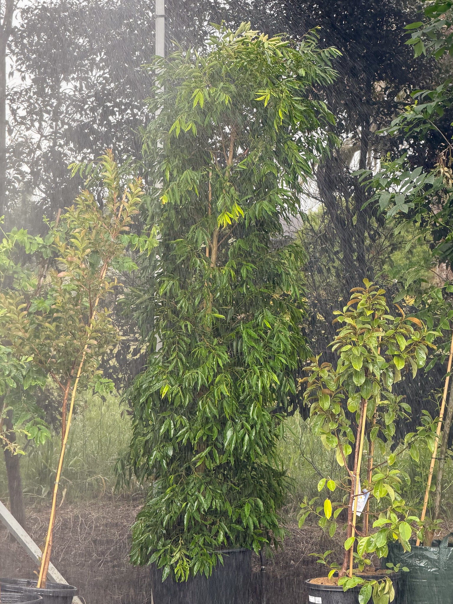 Reaching heights of up to 12 metres, it delivers effective noise reduction and visual screening, making it suitable for urban gardens, poolside planting, rural boundaries, and streetscapes. Its fluffy white flowers attract birds, bees, and beneficial insects, supporting local biodiversity. Tolerates a range of soils and thrives in full sun to part shade with adequate watering. Low maintenance and naturally tidy, it can be left unpruned or shaped as needed. Not drought or frost tolerant but highly resilient in temperate climates.